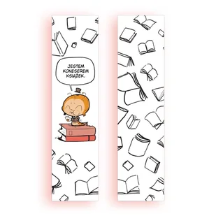 Zakładka kartonowa - Koneser książek. Gadżet. Niezliczona ilość przygód, niesamowite historie, nieograniczona wiedza i wielkie odkrycia Zawsze wracamy wspomnieniami do tych najważniejszych Prawdziwy koneser literatury wie, w którym miejscu się znajduje I gdzie ma wrócić, po przerwie na. . .