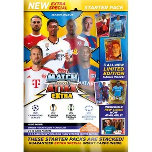 Match Attax powraca z kolejnym ekscytującym sezonem piłkarskich rozgrywek. Kolekcja zaiera 299 kart ze wszystkimi najnowszymi akualizacjami, w tym karty militowane, Paralleles, z autografami, rzadkie, ultrarzadkie i wiele, wiele więcej. Mini Puszka Match Attax Extra to zestaw limitowanych kart. Zawartość: Duży klaser + okładki , Magazyn z listą kontrolną, 25 kart w tym 2 karty limitowane, 1 rzadka karta limitowana. Wydanie w języku angielskim.