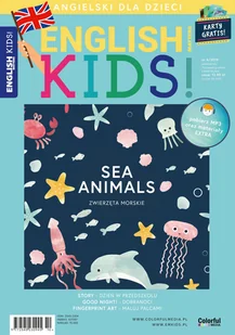 W numerze: Zwierzęta morskie Dzień w przedszkolu Dobranoc! Maluj palcami Po wykonaniu ćwiczeń z magazynu dziecko będzie potrafiło: • wyrecytować rymowanki (o niedźwiedziu, o Humpty Dumpty, o żeglarzu),• zaśpiewać piosenkę o psie Bingo,• nazwać zwierzęta: ośmiornica, rozgwiazda, konik morski, rekin, wieloryb, złota rybka, meduza, krab/rak, żółw, motyl, pies, małpa, niedźwiedź, koń•zareagować na polecenia: Let’s sing! (Zaśpiewajmy), Look at the picture. (Spójrz na obrazek.), Let’s count! (Policzmy!), Let’s go home! (Chodźmy do domu!),• odpowiedzieć na pytania: