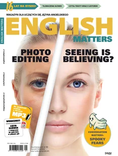W numerze: This & That This & That Sound & Speech Phonemic Symbols: /ʒ/ People and lifestyle Peek at Cillian Murphy Culture Captivating Comic Cons Deceived by Appearances Focus on Language Batory – the Lucky Ship Conversation Matters Spooky Fear Controversial Debate Topics Ethics of Photo Editing Tips Lucky 7 Language Situations What do You Know About the Apostrophe Travel A Weekend in Budapest Leisure Cool Coldplay Personal Glance at the US Rack Your Brain Do pobrania ze strony magazynu: + Lista słówek + Karta pracy dla nauczyciela + Pliki MP3 nagrane do wybranych artykułów Zobacz także: ENGLISH MATTERS W PRENUMERACIE Kody QR w English Matters! Skanując kod QR szybko, wygodnie i bez podawania hasła pobierzesz plik MP3 na swój telefon komórkowy!Aby pobrać pliki MP3, wystarczy na telefonie z aparatem zainstalować aplikację, która umożliwia odszyfrowanie kodu. Odpowiedni program można za darmo pobrać z naszej strony.