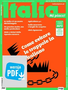 il Michelangelo 2. 0audio Città rigenerateaudio Lavoro e innovazione Agricoltura 4. 0 Viaggio Italia nascosta!audio Mercatini di Natale: 5 luoghi da scoprire in Trentino-Alto Adige Lingua Intrappoliamo le trappole linguisticheaudio Che cosa ricordate di Italia Mi piace? Wybrane artykuły zostały nagrane i można je ściągnąć ze strony magazynu w formie plików mp3! Italia Mi piace! to kwartalnik tworzony przez włosko-polski zespół specjalnie dla wszystkich zainteresowanych nauką języka włoskiego. Magazyn jest ciekawym urozmaiceniem nauki języka włoskiego na poziomie średnio zaawansowanym i zaawansowanym.