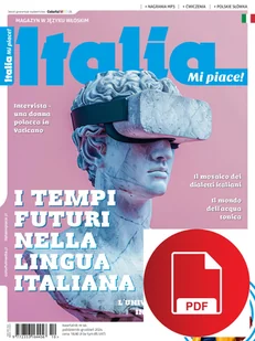 intervista a Magdalena Wolińska-Riedi Cultura Il mosaico dei dialetti italianiaudio La moda di Elsa Schiaparelliaudio Lavoro e innovazione Acqua tonica: più di una bevandaaudio Viaggio I Musei del Gusto della Food Valley emilianaaudio Lingua In «difesa» del futuroaudio 8 cose da fare in Italia che i turisti di massa non fanno Che cosa ricordate di Italia mi piace!? Do pobrania ze strony magazynu: + Pliki MP3 nagrane do wybranych artykułów + Konspekt pracy dla nauczyciela + Lista słówek Italia Mi piace! to kwartalnik tworzony przez włosko-polski zespół specjalnie dla wszystkich zainteresowanych nauką języka włoskiego. Magazyn jest ciekawym urozmaiceniem nauki języka włoskiego na poziomie średnio zaawansowanym i zaawansowanym. Kody QR. Skanując kod QR szybko, wygodnie i bez podawania hasła ściągniesz plik MP3 na swój telefon komórkowy!Aby pobrać pliki MP3, wystarczy na telefonie z aparatem zainstalować aplikację, która umożliwia odszyfrowanie kodu.