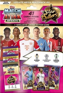 Zanurz się w akcji z pakietem 4 aktualizacji „Star Ballers” z kolekcji Topps Match Attax UEFA Champions League TC 2023/2024! Ten pakiet zawiera mieszankę ekscytujących i ekskluzywnych treści, które przeniosą Twoją kolekcję na nowy poziom. Zawartość : 2 pakiety po 12 kart każdy 1 specjalny pakiet 17 kart, w tym 16 ekskluzywnych kart Aktualizacji 1 nowa karta z limitowanej edycji Update Odkryj moc „Star Ballers” i rozszerz swoją kolekcję dzięki tej wyjątkowej aktualizacji. Wzmocnij swój zespół i zdominuj boisko dzięki najnowszym kartom z sezonu Ligi Mistrzów UEFA 2023/2024.