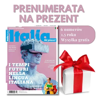 Brak pomysłu na prezent? Zaskocz najbliższych, podaruj prenumeratę Italia Mi piace! Do każdej "prenumeraty w prezencie" dodajemy kartkę okolicznościową dla osoby obdarowanej o treści: "Prenumerata magazynu Italia Mi piace w prezencie dla . . . od . . . " Kartkę możemy wysłać wraz z pierwszym numerem z prenumeraty bezpośrednio na adres osoby obdarowanej lub przesłać ją do zamawiającego, aby wręczył ją osobiście. Przy finalizacji zamówienia (w polu "Zostaw wiadomość") prosimy o: 1. podanie wzoru kartki - 1, 2, 3.