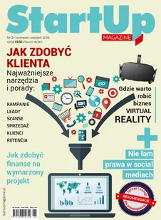 Najbardziej inspirujący do działania magazyn w Polsce! Magazyn skierowany dla młodych przedsiębiorców chcących zacząć przygodę z biznesem. Pismo ma na celu inspirować, dostarczać pomysłów, odkrywać talenty, łamać stereotypy i otwierać umysły. Nowoczesna szata graficzna, świetne teksty, wywiady z tymi, którzy już osiągnęli sukces, to tylko niektóre atuty StartUp Magazine. Spis treści: 1. Narzędzia do budowania marki 2.