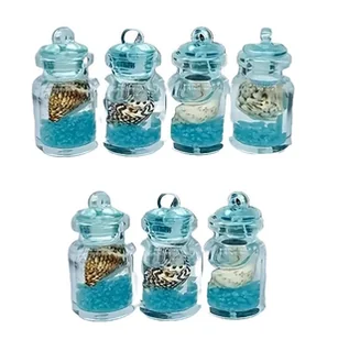 Zawieszki Buteleczki Świecące w Ciemności z Muszelką Niebieskie 8 szt.