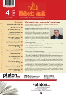 , w których analizujemy największe i. . . najmniejsze sukcesy wydawnictw. Całości dopełnia błyskotliwy felieton Andrzeja Nowakowskiego. Redakcja wyróżnia wydawnictwa dyplomem WYDAWCY ROKU (tegorocznym laureatem został WSiP).