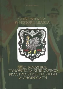 Sześć wieków w historii miasta. W 25. rocznicę odnowienia Kurkowego Bractwa Strzeleckiego w Chojnicach - obszerna publikacja dotycząca najstarszej organizacji społecznej w Chojnicach. Kurkowe Bractwo Strzeleckie w Chojnicach to lokalna organizacja strzelecka, która ma swoje korzenie w tradycji bractw strzeleckich, które były popularne w Europie, zwłaszcza w Niemczech i Polsce, od średniowiecza. Takie bractwa często skupiały się na promowaniu umiejętności strzeleckich, organizowaniu zawodów oraz integrowaniu społeczności lokalnych. Bractwo w Chojnicach, podobnie jak inne tego typu organizacje, może organizować różnego rodzaju wydarzenia, takie jak zawody strzeleckie, pikniki, czy festyny, a także dbać o tradycje i historię regionu.