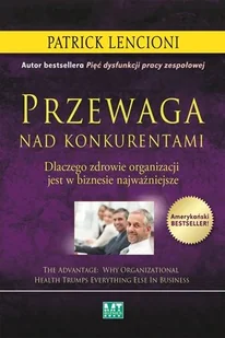 Żyła złota w twojej organizacji...Podczas, gdy bardzo wielu przywódców wciąż jeszcze ogranicza się w swoich poszukiwaniach źródeł przewagi do konwencjonalnych i niemal całkowicie wyeksploatowanych obszarów, takich jak marketing, strategia czy technologia, Lenconi pokazuje, że poza nimi istnieje zupełnie niewykorzystana prawdziwa żyła złota. Przekonuje, że zamiast starać się być mądrzejszymi, przywódcy i organizacje powinny skupić się raczej na tym, by stać się zdrowszymi, a dzięki temu wykorzystać bogatą i zupełnie wystarczającą wiedzę i doświadczenie, jakie już posiadają. Lencioni, autor licznych bestsellerowych opowieści biznesowych takich jak Pięć dysfunkcji pracy zespołowej czy Efektywne spotkanie biznesowe w tej książce odwołuje się do swojego dwudziestoletniego dorobku pisarskiego, badań naukowych i pracy w charakterze konsultanta zarządzających w niektórych spośród czołowych organizacji na świcie. Łączy anegdoty i historie zaczerpnięte z życia z praktycznymi, możliwymi do zastosowania radami, tworząc dzieło przyjemne w czytaniu i bezcenne jako pomocne narzędzie. Rezultatem tej pracy jest bez wątpienia najbardziej - jak dotychczas - wszechstronne i znaczące dzieło Lencioniego.W Przewadze na jej dwustu stronach jest więcej zdrowego rozsądku niż kiedykolwiek udało mi się znaleźć w książce biznesowej. To lektura obowiązkowa."- Colleen Barrett, emerytowana prezes Southwest Airlines Co.; współautorka książki ,,Lead with LUV",,Oto kolejna klasyka biznesu. Nawet najlepsi przywódcy po przeczytaniu będą się zastanawiać ,,Dlaczego jeszcze tego nie zrobiliśmy$366"- Enrique Salem, prezes i dyrektor generalny firmy Symantec,,Robimy rzeczy, które większość uważa za niemożliwe w zwalniającej gospodarce - zakładamy firmę, która rośnie w wyjątkowym tempie. Stosowanie modelu Lencioniego zdrowej organizacji to codzienny wybór i sposób na życie w naszej firmie."- Liz Townsend, dyrektor operacyjny w firmie My Fit Foods,,Przez ponad dekadę stosowałem podejście Lencioniego w zarządzaniu departamentami, którymi kieruję i to podejście nigdy mnie nie zawiodło."- Rick Friedel, wiceprezes AT&T Service Management,,W książce Przewaga Lencioni odrzuca korporacyjny ,,bełkot" rodzący kulturę obstrukcji i ociągania się, a pokazuje przywódcom każdego szczebla, jak budować kulturę produktywności i komunikacji."- Dave Ramsey, autor bestsellerów New York Times i gospodarz popularnych programów radiowych o zasięgu ogólnokrajowym