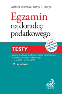 3. 2021 r. i 1. 7. 2021 r. Publikacja zawiera 3-miesięczny dostęp do testów online opracowanych zgodnie z załącznikiem do uchwały Nr 21/VII/2022 Państwowej Komisji Egzaminacyjnej do Spraw Doradztwa Podatkowego z dnia 25 marca 2022 r. Umożliwiają one osobie, która przygotowuje się do egzaminu sprawdzenie wiedzy, zdiagnozowanie problematycznych obszarów i weryfikację w trakcie przygotowywania się do egzaminu. Obecne wydanie uwzględnia najnowsze zmiany wprowadzone m. in. w: Ordynacji podatkowej;ustawie o podatku dochodowym od osób fizycznych;ustawie o podatku dochodowym od osób prawnych;Kodeksie karnym skarbowym;ustawie o podatku leśnym;ustawie o podatku od spadków i darowizn;ustawie o podatku od towarów i usług;ustawie o postępowaniu egzekucyjnym w administracji;ustawie o doradztwie podatkowym;ustawie o podatku akcyzowym;ustawie o rachunkowości;ustawie o zryczałtowanym podatku dochodowym od osób fizycznych. Publikacja daje także dostęp online do aktualizowanych na bieżąco aktów prawnych (trwający 3 miesiące od daty rejestracji w okresie roku od wydania książki) koniecznych do przygotowania się do egzaminu na doradcę podatkowego.