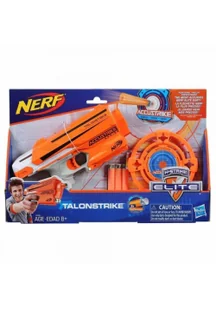 Nerf N-Strike Elite TalonStrike z rzutkami zaprojektowanymi z myślą o precyzji! Walczący mogą pokazać swoje umiejętności celowania, strzelając strzałkami zaprojektowanymi z myślą o większej celności! Ten ekskluzywny blaster Nerf N-Strike Elite TalonStrike jest częścią serii AccuStrike, która zawiera najdokładniejsze rzutki Nerf Elite. Blaster jest wyposażony w wolnostojącą tarczę, więc gracze Nerf mogą ćwiczyć swoje umiejętności celowania, przygotowując się do następnej bitwy lub misji Nerf. Załaduj 1 strzałkę do lufy blastera TalonStrike, przesuń zamek do tyłu, aby naładować.