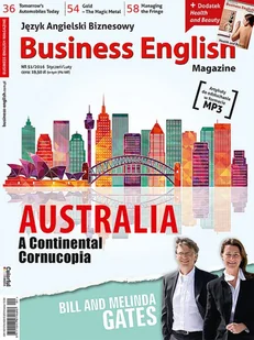 w numerze: in brief Self-employed - That's the Way to Be Intelligent Rubbish George’s short and tall tales Taxing Times international Keeping It in the Familyaudio Backs to the Wall for Bezosaudio cover story Australia - A Continental Cornucopia video/audio business profile Bill and Melinda Gates - A Remarkable Legacy videoaudio The Man from La Coruña business woman Angela Merkel - Europe's First Lady videoaudio business trends Tomorrow's Automobiles, Today audio Peer-based Economies money Are We on the Brink of a Global Currency War? audio Star Wars: Disney's New Force videoaudio Gold - the Magical Metal audio managing people Managing the Fringe audio eGurus: Click Here for Free Download travel For Whom the Bell Atolls audio technology A Picture is Worth a Thousand Wordsaudio business language Business English Discussions – Dropped in It Language Test influential people book & film reviews Do pobrania ze strony magazynu: + Dodatek "Health and Beauty" + Pliki video + Pliki MP3 nagrane do wybranych artykułów NOWOŚĆ! Kody QR: Zeskanuj kod, aby odsłuchać lub pobrać MP3 na telefon komórkowy.