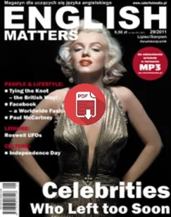 w numerze: this&that this & that People and LifestyleTying the Knot – the British Way! Celebrities Who Left too Soon Facebook – a Worldwide Fashion Paul McCartney – the NicestBeatle CultureNew Roleaudio 4th of July – Independence DayMr. Harry Houdiniaudio environmentNuclear Power – a Solution or a Threat?audio TravelAn Underwater Wonder of Natureaudio Discover Wyre LeisureRoswell UFOs Do pobrania ze strony magazynu: + Pliki MP3 nagrane do wybranych artykułów Kody QR. Skanując kod QR szybko, wygodnie i bez podawania hasła ściągniesz plik MP3 na swój telefon komórkowy!Aby pobrać pliki MP3, wystarczy na telefonie z aparatem zainstalować aplikację, która umożliwia odszyfrowanie kodu. Odpowiedni program można za darmo pobrać z naszej strony.
