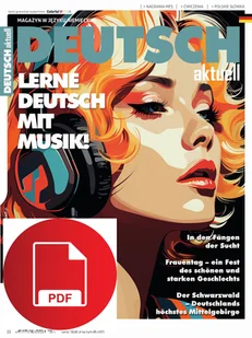 w numerze: IN DER KÜRZE LIEGT DIE WÜRZE FILM | BUCH | MUSIK SPRACHECKEaudio MINI-WÖRTERBUCH audio FÜR ODER GEGEN LEUTE Wolfgang Joop – ein "Wundermensch" KURZ UND KNAPP Frauentag – ein Fest des schönen und starken Geschlechtsaudio KUNST Neo Rauch – der Superstar der zeitgenössischen Malerei GESELLSCHAFT In den Fängen der Suchtaudio KULTUR Österreich – das Land der klassischen Musik audio KONVERSATION Wir rocken das! TIPPS & TRICKSLerne Deutsch mit Musik!audio GRAMMATIK Der Imperativ REISE & CO. Der Schwarzwald – Deutschlands höchstes Mittelgebirgeaudio REDEWENDUNGEN 15 Redewendungen zum Thema „Ostern“ QUIZ Do pobrania ze strony magazynu: + Lista słówek + Karta pracy dla nauczyciela + Pliki MP3 nagrane do wybranych artykułów WAŻNE! 83, sprost. : Dz. U. 94 Nr 43 poz. 170. wykorzystywanie autorskich pomysłów, rozwiązań, kopiowanie, rozpowszechnianie zdjęć, fragmentów grafiki, tekstów opisów w celach zarobkowych, bez zezwolenia autora jest zabronione i stanowi naruszenie praw autorskich oraz podlega karze.