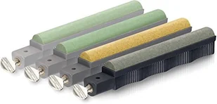 Kamienie Lansky hrset Curved Blade Hones to kamienie specjalnie zaprojektowane do ostrzenia noży o krawędzi zakrzywionej do wewnątrz, np. kukris, karambits, hawkbills i kos. Ten zestaw osełek szybko przyniesie pożądane efekty dzięki kompletnemu zestawieniu kamieni o różnej gradacji, od gruboziarnistego po naprawdę drobne ziarna. do ostrzenia wstępnego: gradacja 120drugi etap ostrzenia: