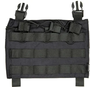 Panel przeznaczony do kamizelek taktycznych w systemie Buckle Up składający się z trzech ładownic do swobodnego przenoszenia magazynków typu AR / AK / G36. Wykonany z lekkiego i wytrzymałego materiału ASPEN 500D. Wyposażony w 3 rzędy MOLLE/PALS pozwalające na montaż dodatkowego oporządzenia. Ładownice na magazynki w systemie OPEN umożliwiają błyskawiczny dostęp, a możliwość zabezpieczenia magazynka linką typu "shockcord" dodatkowo zabezpiecza przenoszoną zawartość. Panel mocowany przy użyciu rzepa oraz klamer zatrzaskowych.