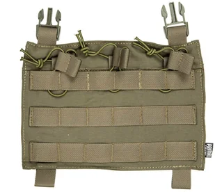 Panel przeznaczony do kamizelek taktycznych w systemie Buckle Up składający się z trzech ładownic do swobodnego przenoszenia magazynków typu AR / AK / G36. Wykonany z lekkiego i wytrzymałego materiału ASPEN 500D. Wyposażony w 3 rzędy MOLLE/PALS pozwalające na montaż dodatkowego oporządzenia. Ładownice na magazynki w systemie OPEN umożliwiają błyskawiczny dostęp, a możliwość zabezpieczenia magazynka linką typu "shockcord" dodatkowo zabezpiecza przenoszoną zawartość. Panel mocowany przy użyciu rzepa oraz klamer zatrzaskowych.