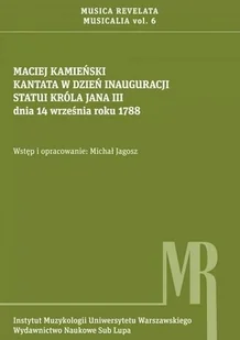 Kantata w dzień inauguracji statui króla Jana III. Michał Jagosz. Książka. Szósty tom serii Musica Revelata zawiera edycję cennego zabytku muzyki polskiego Oświecenia kantatę autorstwa Macieja Kamieńskiego do słów Adama Naruszewicza, skomponowaną na zamówienie króla Stanisława Augusta. . .