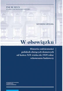 Przed stu laty wspólną częścią losu wielu młodych kobiet pochodzących z ubogich rodzin – głównie wiejskich – było podejmowanie pracy w charakterze służby domowej. Nadmiar rąk do pracy na wsi skłaniał je do opuszczenia rodzinnych domów i pójścia – jak wówczas mawiano – do „obowiązku”. Książka ukazuje wielostronny obraz codzienności polskich służących domowych. Na podstawie analizy różnego typu źródeł – akt sądowych, druków ulotnych, pamiętników, prasy, poradników oraz literatury pięknej – rozważono w niej cztery główne wiązki problemów badawczych: relacje pomiędzy służbą domową a pracodawcami, czas pracy i czas wolny od obowiązków, warunki życia i pracy służących, a także ich perspektywy i trajektorie życiowe.