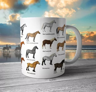 Na kubku znajdują się wizerunki koni: