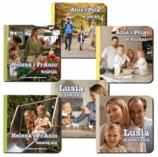 Komplet 6 książeczek do rozwoju mowy. Zbiór uroczych historyjek dla dzieci, które wprowadzają maluchy w świat codziennych przygód i relacji. Lusia, Helena, Franio, Aluś i Pola to bohaterowie, którzy razem odkryją radość wspólnej zabawy, spędzania czasu na świeżym powietrzu. Każda książeczka to nie tylko ciekawa historia, ale także wartościowa lekcja o przyjaźni, rodzinie i otaczającym świecie. Każda Książeczka wykonana jest z grubego kartonu i odpowiednio duża (15cm/15cm) do chwycenia przez małą rączkę.