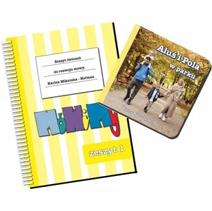 W tej aukcji kupujesz 2 produkty Zeszyt ćwiczeń do rozwoju mowy. Część 1 MóWiMy + Książka ''Aluś i Pola w parku '' Zeszyt cz. 1 zawiera zabawy na sylabach otwartych ( spółgłoska i samogłoska ) lub pojedynczych dźwiękach, dobranych tak, żeby dziecko zaczęło mówić. Zeszyt jest na metalowej spirali, po to, by do ćwiczeń, można było go składać i pokazywać dziecku tylko jeden obrazek. Na jednej stronie jest obrazek dla dziecka, powyżej, którego znajdują się labiogramy czyli zdjęcia dzieci wymawiających dane głoski.