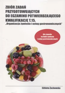 Publikacja przeznaczona jest dla uczniów kształcących się w zawodzie technik żywienia i usług gastronomicznych. Zawiera 5 zestawów pytań oraz 5 zadań przygotowujących do pisemnej i praktycznej części egzaminu zawodowego. Ułatwieniem samodzielnej pracy są zamieszczone w książce odpowiedzi do wszystkich zadań. Zbiór przygotowuje uczniów do egzaminu potwierdzającego kwalifikację T.15 Organizacja żywienia i usług gastronomicznych.
