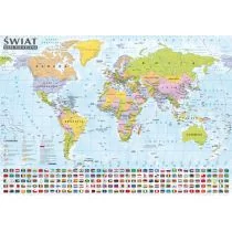Solidna i dwustronnie laminowana ścienna mapa świata będzie zarówno cenną pomocą w nauce i zabawie, jak i interesującą ozdobą pokoju. Po jednej stronie znajduje się mapa polityczna, na odwrocie - mapa krajobrazowa.