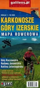 Mapa rowerowa - Karkonosze, Góry Izerskie 1: 50 000Plan ➡️ Podróże / Mapy turystyczne ✔️ Składana, laminowana mapa szlaków rowerowych w Karkonoszach i Górach Izerskich w skali 1: 50 000 wydawnictwa Galileos. Przedstawione trasy rowerowe zostały wyróżnione i obejmują Karkonosze, Góry Izerskie, Kotlinę Jeleniogórską, Rudawy Janowickie oraz znaczną część Gór Kaczawskich i Pogórza Izerskiego. Na mapie zaznaczono m.