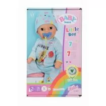 BABY born Little Boy 36 cm with romper and hat. Includes 1 potty, 1 cloth nappy, 1 bottle, 1 plate with spoon, 1 dummy and 1 birth certificate.