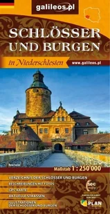 Niemieckojęzyczna wersja mapy ,,Zamki i pałace Dolnego Śląska" w skali 1: 250 000. Naniesiono na niej wszystkie zamki, pałace, dwory (z podziałem na w dobrym stanie i zniszczone), wieże mieszkalne i twierdze. Zaznaczono również obiekty, które można zwiedzać i te, w których są hotele. Ponad 120 z nich przedstawiono za pomocą ilustracji. Na drugiej stronie umieszczono obszerny opis wybranych budowli w języku niemieckim (122 obiekty) wraz z fotografiami.
