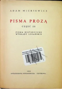 Tytuł: Mickiewicz Dzieła Tom VII Pisma prozą Część 3 Adam Mickiewicz Rok wydania: 1955 Rodzaj okładki: Twarda Autor: Adam Mickiewicz Wydawca: Czytelnik