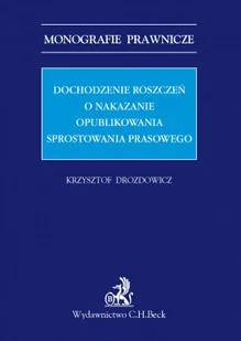 Publikacja stanowi pierwszą w Polsce monografię dotyczącą instytucji sprostowania prasowego po wejściu w życie ustawy z 14.9.2012 r. o zmianie ustawy - Prawo prasowe (Dz.U. z 2012 r. poz. 1136). Książka poświęcona jest materialnoprawnym i procesowym zagadnieniom związanym z tą instytucją. W ramach zagadnień materialnoprawnych omówiono m.in. definicję sprostowania prasowego i jego funkcje, wymogi formalne wniosku o sprostowanie, odmowę opublikowania sprostowania, charakter prawny instytucji oraz podstawy wytoczenia powództwa. W rozdziałach poświęconych problemom procesowym skupiono uwagę m.in. na zdolności sądowej jednostek organizacyjnych, legitymacji redaktora naczelnego i skutkach zaprzestania pełnienia tej funkcji w toku procesu, związania sądu żądaniem pozwu i możliwości ingerencji w treść sprostowania, apelacji oraz możliwym sposobom zabezpieczenia roszczeń.