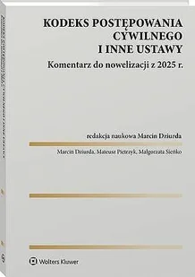 Kodeks postępowania cywilnego i inne ustawy. Małgorzata Sieńko, Marcin Dziurda, Mateusz. Książka. Książka zawiera jedyny na rynku, pełny komentarz do dwóch niezwykle istotnych dla praktyki ustaw nowelizujących postępowanie cywilne: ustawy z 5 sierpnia 2025 r o zmianie ustawy – Kodeks. . .