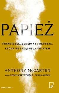 Na podstawie książki laureata Oscara powstał film w reżyserii Fernando Meirellesa (,,Miasto Boga", ,,Wierny ogrodnik", ,,Miasto ślepców") z Anthonym Hopkinsem i Jonathanem Price'em w rolach głównych - już wkrótce w Netfliksie. 11 lutego 2013 roku po raz pierwszy od sześciuset lat została złamana tradycja: papież Benedykt XVI, konserwatywny obrońca doktryn Kościoła, obwieścił światu swoją rezygnację ze stanowiska. Wkrótce za zamkniętymi drzwiami Kaplicy Sykstyńskiej zgromadzili się kardynałowie, by wybrać nowego przywódcę dla ponad miliarda wiernych. Dwa dni później nowym papieżem został charyzmatyczny Argentyńczyk, Jorge Bergoglio, znany odtąd jako Franciszek. Sześćset lat temu Celestyn V postanowił z własnej woli ustąpić ze stanowiska, chciał powrócić do pustelniczego życia. Dlaczego jednak Benedykt XVI, najbardziej konserwatywny papież we współczesnym Kościele, podjął tak szokującą decyzję$660 I dlaczego ów strażnik wiary i obrońca doktryny w ogóle rozważał ten krok - wiedział, że jego miejsce na tronie Piotrowym najprawdopodobniej zajmie postępowy Jorge Bergoglio, którego charakter i poglądy były mu całkowicie obce$661 Papież to bezkompromisowa, poruszająca i zabawna opowieść o dwóch diametralnie różnych mężczyznach, których losy splatają się i mają na siebie ogromny wpływ.Anthony McCarten - pisarz, dramatopisarz, scenarzysta. Autor scenariusza do filmu ,,Teoria wszystkiego", za który zdobył nominację do Oscara oraz dwie statuetki BAFTA (Nagrodę Brytyjskiej Akademii Filmowej). Napisał także scenariusz do obsypanego nagrodami ,,Czasu mroku", którego książkowa wersja ukazała się nakładem wydawnictwa Marginesy, a także filmu biograficznego o Freddiem Mercurym i zespole Queen - ,,Bohemian Rhapsody".