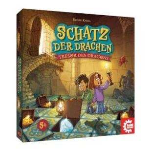SCHATZ DER DRACHEN von Reiner Knizia ist ein spannendes Kinderspiel für 2-5 Spieler ab 5 Jahren. Bei dem Memo-Spiel mit Twist merken sich die Kinder, wo die wertvollsten Schätze versteckt sind. Wird ein Schatz gefunden, kann man aufhören oder aber in der Hoffnung auf eine noch größere Belohnung weitere Plättchen umdrehen. Dabei ist allerdings Vorsicht geboten denn auch die feuerspeienden Drachen und fiesen Spinnen lauern unter den Kacheln