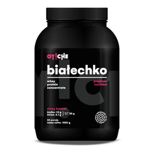 OY!CHE Białechko Słony karmel – białko, które smakuje i działaSięgnij po OY!CHE BIAŁECHKO, wysokiej jakości odżywkę białkową WPC dostępną w czterech smakach: wanilia, truskawka, słony karmel i czekolada. To idealny wybór, jeśli chcesz wspierać regenerację mięśni, budować masę lub uzupełniać dietę w pełnowartościowe białko. Dlaczego warto?Pełnowartościowe białko z kompletem aminokwasów, w tym BCAA. Doskonały smak, który sprawia, że suplementacja to przyjemność.
