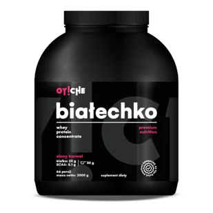 OY!CHE Białechko Słony karmel – białko, które smakuje i działaSięgnij po OY!CHE BIAŁECHKO, wysokiej jakości odżywkę białkową WPC dostępną w czterech smakach: wanilia, truskawka, słony karmel i czekolada. To idealny wybór, jeśli chcesz wspierać regenerację mięśni, budować masę lub uzupełniać dietę w pełnowartościowe białko. Dlaczego warto?Pełnowartościowe białko z kompletem aminokwasów, w tym BCAA. Doskonały smak, który sprawia, że suplementacja to przyjemność.