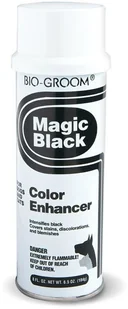 Bio-Groom Magic Black to preparat intensyfikujący czarny kolor sierści. Pokrywa przebarwienia, odbarwienia i plamy na sierści. Magic Black to wyjątkowy puder w sprayu o głębokim czarnym kolorze. Wolny od freonu. Szybko wysycha i pozostaje na sierści.