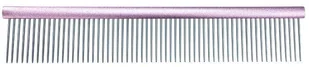 Wysokiej jakości grzebień metalowy z okrągłym aluminiowym uchwytem i zębami wykonanymi ze stali nierdzewnej. Idealny dla pudli i ras posiadający wełnisty, kręcony włos.