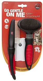 Mikki Zestaw do pielęgnacji kotów Kitten ze szczotką Slicker, grzebieniem i grzebieniem na pchły – delikatny zestaw startowy do pielęgnacji, czarny