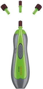 2 x duże o grubej granulacji: O 1,5 cm 2 x małe o drobnej granulacji: O 0,8 cm Mini latarka Baterie 2 x AA 1,5 V w zestawie Wymiary: Całkowite: dł. x szer. x wys. : 15,3 x 4,2 x 3,1 cm Głowice szlifierskie, małe: O x dł. : 0,8 x 3 cm Głowice szlifierskie, duże: