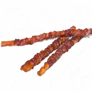 Nareszcie popularny przysmak w postaci skóry wołowej owiniętej smakowitym mięsem jest dostępny w wersji XXL! Twojego psa czeka podwójna kulinarna radość: rurki są owinięte w 100% czystym mięsem, a w ich środku znajduje się skóra wołowa. Mięso zostało wysuszone powietrzem, poddane delikatnej obróbce i zrolowane. Dzięki temu przysmak zachował swoją twardą konsystencję, co zapewnia Twojemu psu długą i intensywną przyjemność z żucia - to świetne zajęcie dla psów, które dużo i chętnie gryzą. Przez specjalny proces suszenia mięsne rurki zawierają mało tłuszczu i nadają się także dla psów z tendencją do nadwagi.
