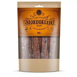 TRZYPSY MORDOKLEJKI Przysmaki 100% mięsa dla psa z JELENIA 70g TRZYPSY MORDOKLEJKI Przysmaki 100% mięsa dla psa z JELENIA 70g TRZYPSY Mordoklejki to w pełni naturalne gryzaki dla psów, wykonane ze 100% mięsa w formie podłużnych pasków. Nie zawierają konserwantów ani barwników. Przysmak ten jest smaczny i pożywny, stanowi doskonałe uzupełnienie codziennej diety naszego pupila. Idealnie sprawdzą się jako nagroda. Opakowanie zawiera 70g produktu.