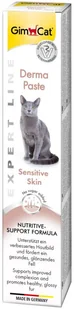 Produkt zawiera witaminy, w tym te z grupy B, które mogą przyczynić się do zdrowego funkcjonowania i wyglądu skóry oraz sierści. Beta-glukan może działać regulująco i łagodzić podrażnioną skórę, a cynk i biotyna mogą promować elastyczność, jędrność i połysk skóry oraz sierści. GimCat Derma pasta dla kota zawiera także algi chlorelli i olej z wiesiołka, które są źródłem cennych kwasów tłuszczowych omega. GimCat Derma pasta dla kota w skrócie: Pokarm uzupełniający dla kotów.