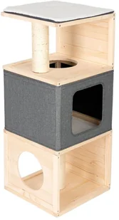 W szczególności kotom niewychodzącym należy zapewnić odpowiednią dawkę zabawy i wspinaczki oraz miejsce do drapania w mieszkaniu. Prezentowany domek dla kota Cubist to doskonałe rozwiązanie. Stabilna drewniana konstrukcja zmieści się w niemal każdym kącie, zapewniając Twojemu kotu możliwość zabawy na czterech poziomach. Ta trzypiętrowa wieża dla kota jest stabilna i wytrzymała: jest w stanie wytrzymać nawet najdziksze zabawy.