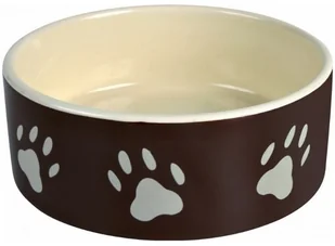 Ekskluzywnie wyglądająca ceramiczna miska w kolorze brązowym, zdobiona beżowym motywem łapek na obwodzie, wewnątrz beżowa emalia. Miska nadaje się na pokarm oraz na wodę. Dzięki dość znacznej wadze miska nie przesuwa się podczas jedzenia. Miski ceramiczne są łatwe do utrzymania w czystości, mogą być także myte w zmywarce.
