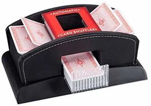 Łatwe tasowanie kart! Dzięki temu elektrycznemu shufflerowi tasowanie kart podczas następnego wieczoru gier jest dziecinnie proste. 2 paczki kart są wkładane do tac wejściowych i tasowane na tacy wyjściowej za naciśnięciem jednego przycisku. W przyszłości oszukiwanie nie będzie już możliwe. Zasilany bateryjnie tasowacz kart jest odpowiedni do standardowych kart do gry w pokera, rommee i wiele innych i ma wysokiej jakości, elegancki skórzany wygląd. Uwaga: Tasowarka jest przeznaczona wyłącznie do standardowych kart o wymiarach 6,3 x 9,2 cm.