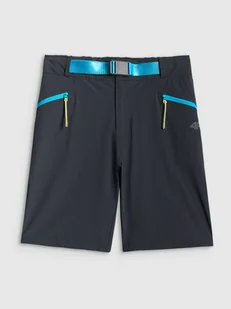 Wysoki stan wygodnie układa się w talii, a regulacja paskiem z klamrą pozwala precyzyjnie dopasować obwód do sylwetki. Pas zapinany na zamek i napy gwarantuje trwałe i stabilne zapięcie podczas ruchu. Regularny krój zapewnia swobodę, a długość do kolan sprawdza się w trekkingowych warunkach, chroniąc skórę i nie ograniczając mobilności. Model wyposażono w praktyczne kieszenie na zamek – dwie boczne oraz jedną tylną – które umożliwiają bezpieczne przechowywanie drobiazgów w trakcie wędrówki. To funkcjonalne rozwiązanie, dzięki któremu możesz skupić się na trasie i czerpać pełnię satysfakcji z każdego kilometra.