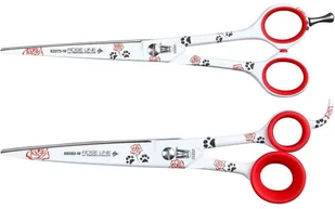 Wyposażone w gumowe ringi oraz jednostronny hak. Nożyczki z serii Art posiadają czerwono-czarne zdobienia w łapki i róże.